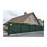 Solide, ondoorzichtige geweven zichtbreekdoeken in uv-gestabiliseerd polyethyleen, rondom omzoomd en voorzien van bevestigingsringen Ø 12mm om de 30cm. Toepassing: visuele afsluiting van private tuinen en terreinen.