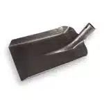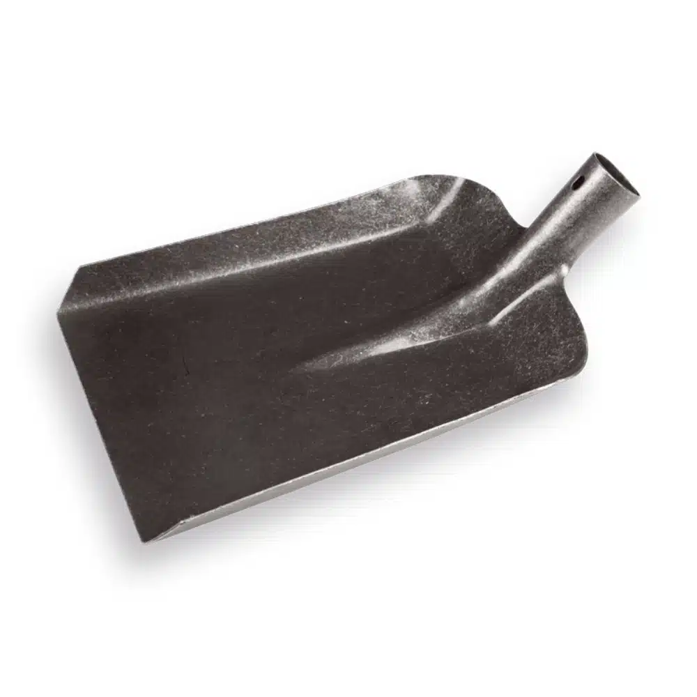 Stalschop nr. 5, gestraald, maat 26cm x 34cm. Door de opstaande hoge randen van gehard en getrommeld staal en het vierkante model met platte bodem is deze stalschop perfect geschikt voor het leegscheppen van stallen en het opscheppen van zwaarder materiaal. De schop is blank gelakt.