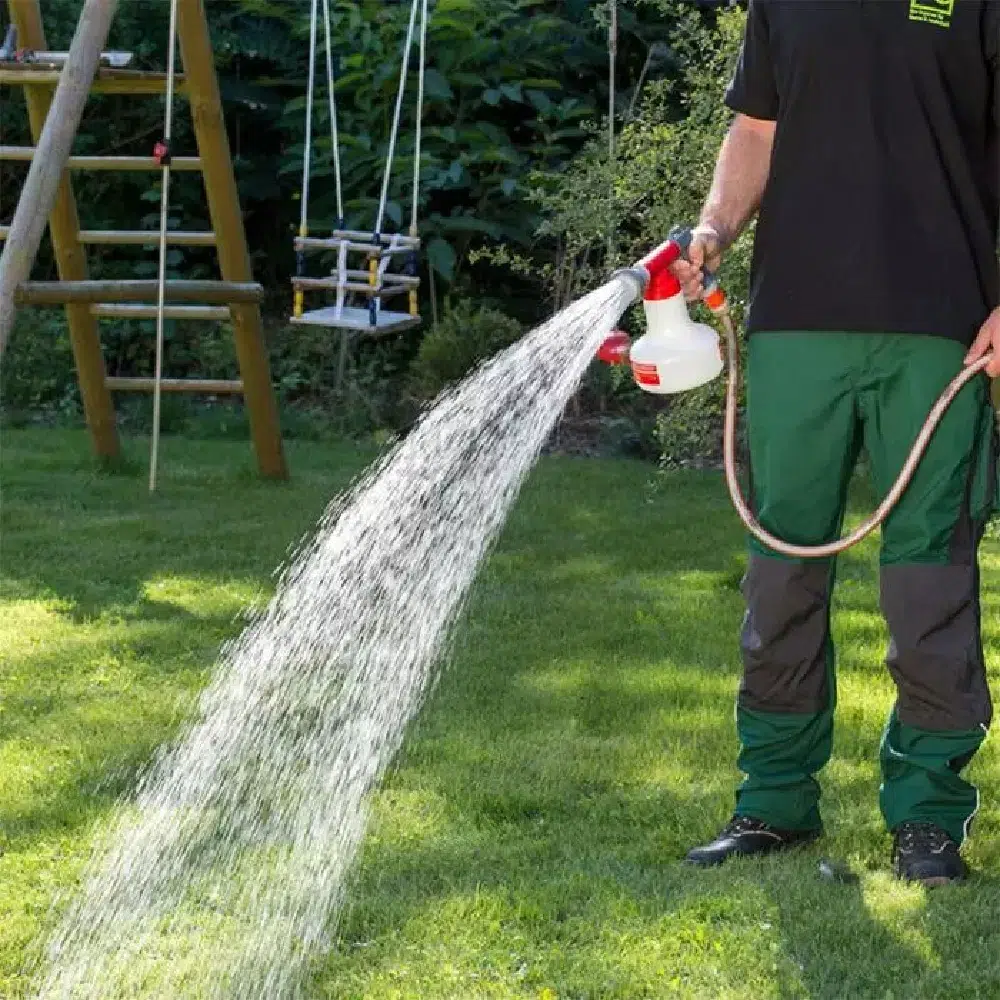 Direct vloeibare meststoffen meegeven met het water van de tuinslang in deze handige applicatie van Birchmeier.