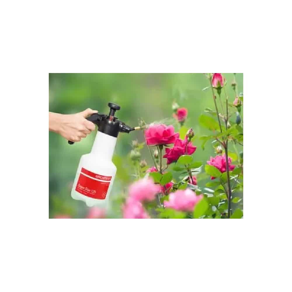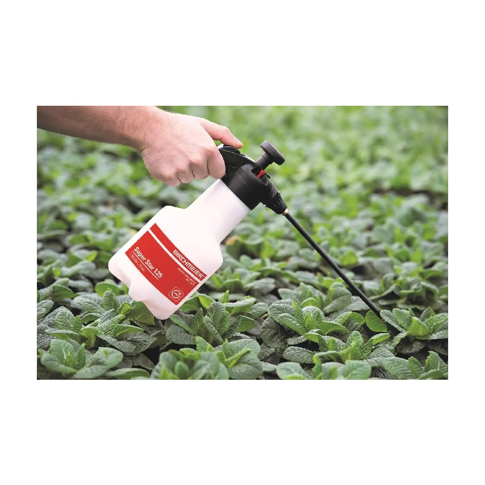 KLEINE, HANDIGE HANDSPROEIER VOOR HUIS EN TUIN Birchmeier Super Star Plus Handsproeier 1,25L 360° Kleine, handige druksproeier voor huis en tuin. Met messing sproeidop en regelbare kop, ook geschikt voor het sproeien op de onderkant van bladeren. Eenvoudig beweegbare en regelbare messing sproeidop, waardoor ook de onderzijde van de bladeren besproeit kan worden. Voorzien van een ingenieus overdruk- en ontluchtingsysteem en verzonken grepen.