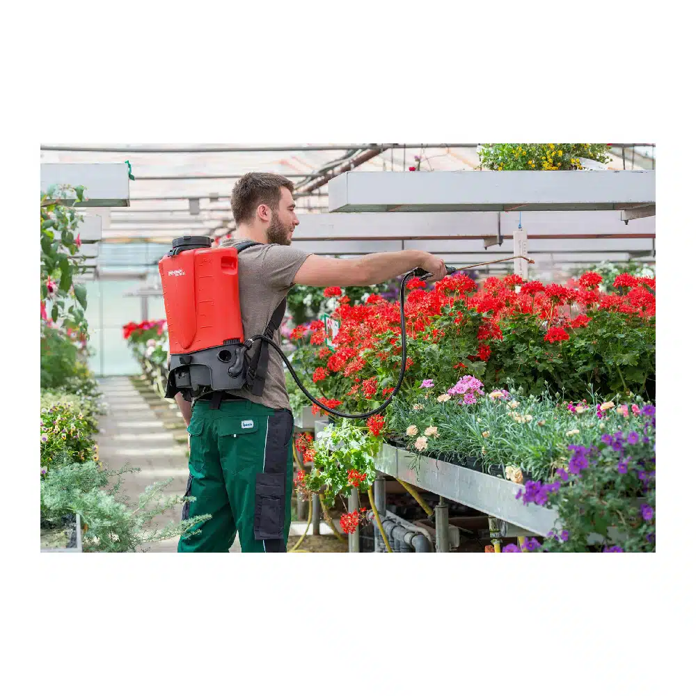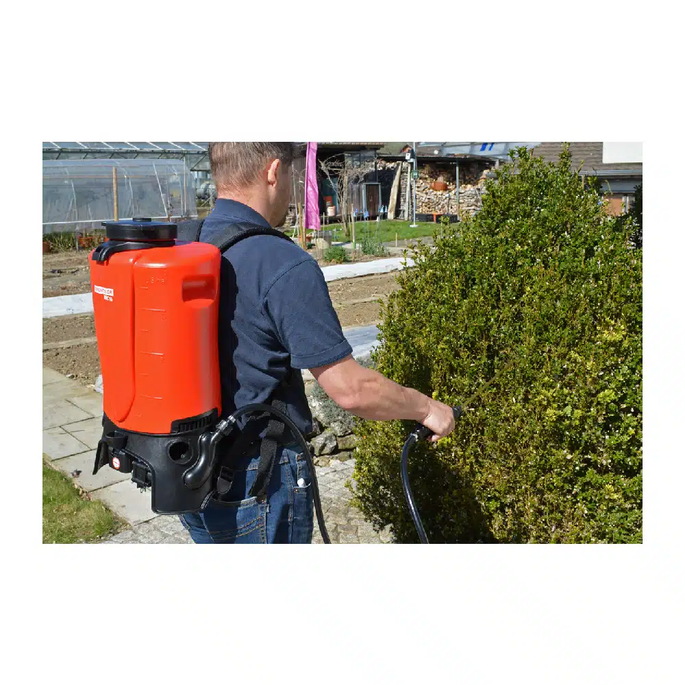 Drukgestuurde accu rugsproeier met CAS systeem.