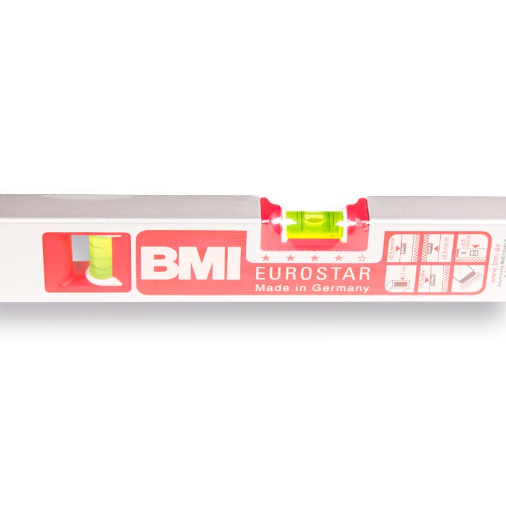 Productomschrijving BMI blokwaterpas van aluminium. Voorzien van een gepatenteerde, gemakkelijk afleesbare ronde libellen. Hoge meetnauwkeurigheid en 2% hellingmarkeringen op horizontale libel. Sterk aluminium profiel voor een langere levensduur en schokabsorberende rubberen doppen aan beide uiteinden.
