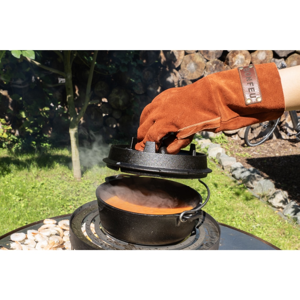 De BonFeu-handschoenen zijn een must-have voor liefhebbers van buiten koken. Deze barbecue handschoenen zijn gemaakt van hoogwaardig lichtbruin suède en vormen de perfecte balans tussen functionaliteit en stijl. Met een hittebestendigheid tot 500°C bieden de BonGloves betrouwbare bescherming voor al jouw BonFeu kookbehoeften. Deze bbq handschoenen zijn onmisbaar voor het bedienen van alle BonFeu kookproducten zoals de BonBiza en accessoires zoals de planca en grills. Om hun hittebestendigheid en levensduur te behouden, is het aan te raden om de hittebestendige handschoenen droog te houden, dus binnen opbergen is aan te raden. Als onderscheidend detail heeft de handschoen een BonFeu logodetail aan de bovenkant. Dus upgrade je culinaire buitenervaring met de BonGloves Let op! Voor je eigen veiligheid is het belangrijk dat je jouw BonFeu kookunit laat afkoelen voordat je deze verplaatst.