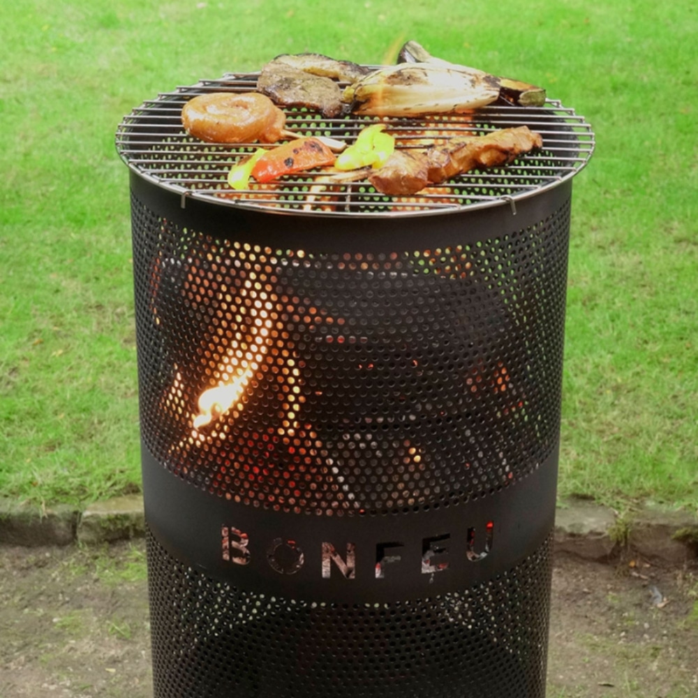 De BonFeu BonVes is een stoere vuurkorf, gemaakt van stevig staal in een stijlvolle zwarte uitvoering. Het eigentijdse design geeft de vuurkorf een robuuste uitstraling. Dankzij het geperforeerde staal geniet je van een sfeervol zicht op de vlammen en straalt de warmte rondom uit. Een echte sfeermaker voor in jouw tuin!