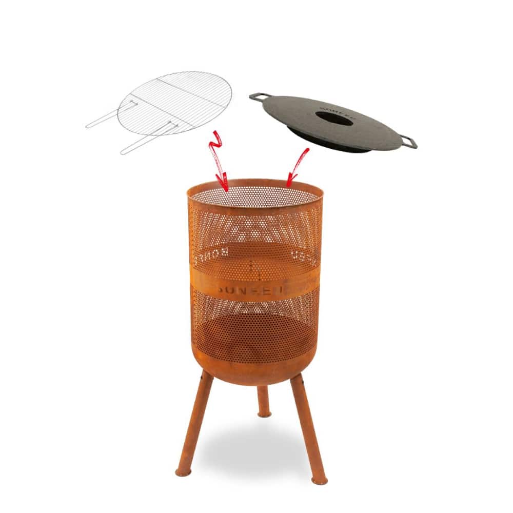 De BonVes wordt geleverd met een praktisch grillrooster, waarmee je eenvoudig een heerlijk stukje vlees of vis kunt bereiden. Het rooster plaats je bovenop de vuurkorf en kun je gemakkelijk verwijderen zodra je klaar bent. Daarna kun je genieten van een knisperend haardvuur. Wil je liever koken met een bakplaat? Dat is ook mogelijk! De BonVes kan worden uitgebreid met een losse plancha voor nog meer kookmogelijkheden. Praktisch en veelzijdig De BonVes is ontworpen voor gebruiksgemak. Dankzij het meegeleverde verstelbare stookplateau kun je het vuur op de bodem of op een hogere stand stoken, bijvoorbeeld voor barbecueën. De vuurkorf is veelzijdig en ideaal voor gezellige avonden buiten. Houd er wel rekening mee dat het staal door gebruik en blootstelling aan weersinvloeden kan verkleuren. Dit natuurlijke proces geeft de vuurkorf een unieke, robuuste uitstraling. De BonFeu BonVes Vuurkorf in het kort: