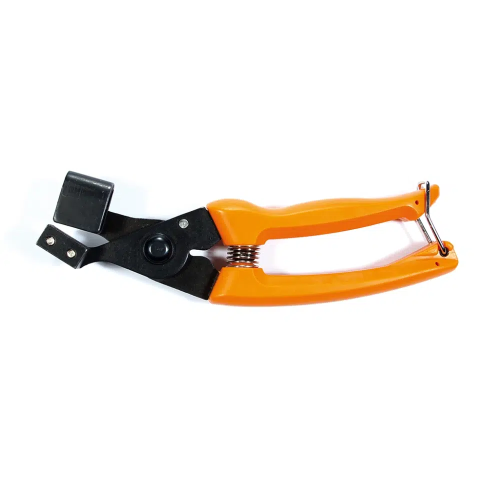 De bindtang met nietjes zorgt ervoor dat de bindbuis snel en makkelijk vastgezet kan worden. De bindbuis wordt om de plant en de geleider gewikkeld. Vervolgens kan met de (op)bindtang een nietje om de beide uiteinden van de buis gebogen worden. Zo komen deze met een stevige binding aan elkaar vast te zitten. De buis kan vervolgens met het mesje van de tang afgesneden worden.
