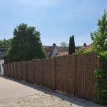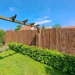 De bast van de boom wordt in stroken gesneden van ca 4 cm. Deze stroken worden om de 10 cm met alleen bruin gecoat draad geweven tot een mat. Bent uw opzoek naar een fraaie en robuuste natuurlijke afscheiding. Dan is de boomschormat zeker een aanrader. Dit komt omdat Arendsnatuurlijk boomschorsmatten heeft die gemaakt zijn van de bast van de Chinese dolkspar. De bast van de Chinese dolkspar is over het algemeen een stuk taaier en brokkelt dus ook minder af. Het is van belang om de boomschorsmat goed vast te zetten. Probeer te voorkomen dat de mat gaat klapperen in de wind. Het vastzitten is vrij gemakkelijk, u kunt de boomschorsmat bevestigen tegen al bestaande materialen, zoals een oude schutting of muur, of tegen een gaasmat met behulp van tie-raps of binddraad. Boomschorsmatten worden gemaakt van ca 4 cm brede duurzame stroken Boomschors en is onderling verbonden met alleen geplastificeerd ijzerdraad voor een lange levensduur, hierdoor zijn de boomschorsmatten erg zichtdicht , circa 90 %. De boomschorsmat is eenvoudig te plaatsen tegen gaashekwerk of gaasmatten en kan je het beste bevestigen met tie-raps of ijzerdraad. Boomschorsmatten blijven langdurig een mooie diep bruine kleur behouden en zijn ideaal als klimwand voor klimplanten. De levensduur van Boomschorsmatten is ook afhankelijk van de constructie en bevestiging, Er moet altijd voor gezorgd worden dat de mat niet gaat bewegen in de wind.