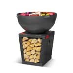 Premium Grill Santos is een uniek product. Je geniet van een barbecue, vuurschaal en houtopslag in één!