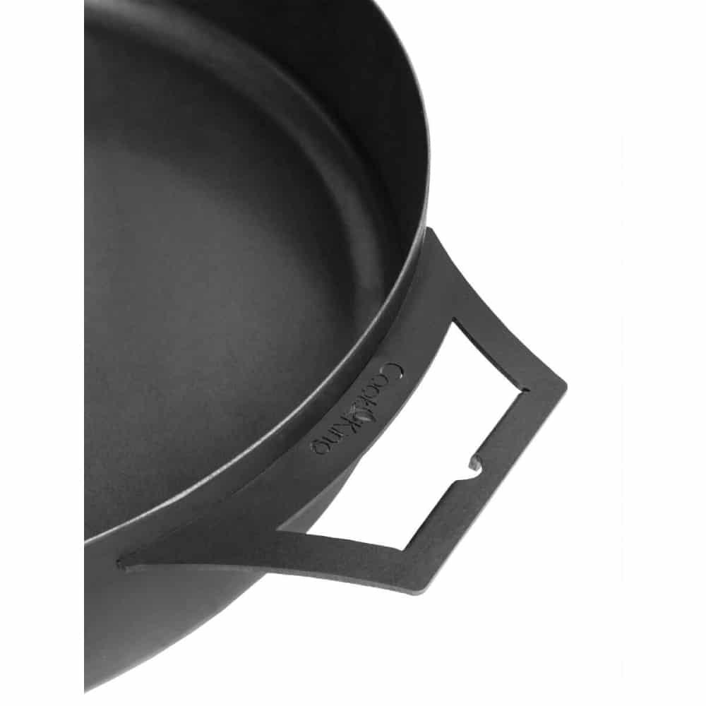 Deze veelzijdige pan belichaamt de perfecte combinatie van functionaliteit en stijl, waardoor het een onmisbaar hulpmiddel is voor iedereen die graag buiten kookt, barbecuet of gewoonweg van heerlijk eten houdt. Met een diameter van 50cm is de pan groot genoeg om grote eenpansgerechten in klaar te maken. De pan is zeker ruim genoeg voor het maken van een gerecht voor ongeveer 6 personen. De CookKing Pan is vervaardigd uit hoogwaardig staal, wat niet alleen zorgt voor duurzaamheid, maar ook een elegante uitstraling geeft aan jouw buitenkookervaring. Het materiaal is vrij van schadelijke coatings en is dus volledig veilig om mee te koken. Of je nu aan het wokken, bakken of koken bent, deze pan staat garant voor optimale prestaties en een gelijkmatige warmteverdeling. Bereik gastronomische hoogtepunten terwijl je geniet van de veelzijdigheid die deze pan biedt. Gebruik en onderhoud Of je nu een barbecuefeest organiseert, aan het grillen bent in de achtertuin of kampeert in de wildernis, de CookKing Pan past zich moeiteloos aan jouw buitenavonturen aan. Het onderhoud is eenvoudig: na gebruik afspoelen met warm water en mild afwasmiddel is voldoende om de pan in topconditie te houden. Het compacte ontwerp met twee handvatten maakt de pan handzaam en praktisch voor elke buitenkook omgeving. De handvaten maken het makkelijk de pan op te hangen. Daarnaast kan de pan op een stalen onderzetter worden geplaatst om direct boven het vuur of kolen gebruikt te worden. CookKing pan met handvaten ø 50cm in het kort: