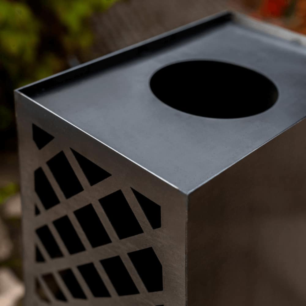 De Avangardo is een unieke tuinhaard. De voorzijde is open gewerkt met een open patroon waardoor het vuur goed zichtbaar is. Daarnaast zit er aan de bovenzijde aan gat waar de rook door afgevoerd zal worden. Door het dikke staal zal de haard de warmte van de haard goed bewaren en afgeven als je er omheen zit. Met een breedte van 50cm en een hoogte van 108 kan de tuinhaard ook in een kleine tuin geplaatst worden. Zwart stalen buitenhaarden en roestvorming De producten van CookKing zijn gemaakt van staal. Staal heeft de eigenschap roestvorming te vertonen in vochtige omstandigheden. Dit betekent dus dat zwart stalen producten hun zwarte kleur niet (volledig) zullen behouden. Dit geeft een robuuste look en heeft geen invloed op de kwaliteit. gemaakt van staal De Tuinhaard Avangardo in het kort: