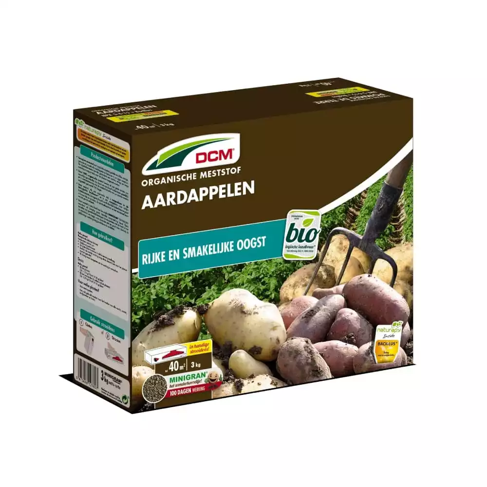 Aardappel telen, zowel vroege als late, doe je het beste met DCM Meststof voor aardappelen. De aangepaste samenstelling bevat voldoende kalium voor stevige en vooral smakelijke aardappelen. Hierdoor zijn deze lang houdbaar. Lees hier meer. Plant u aardappelen aan in vivimus groenten zodat ze een nog betere start krijgen. Waarom Meststof voor Aardappelen?