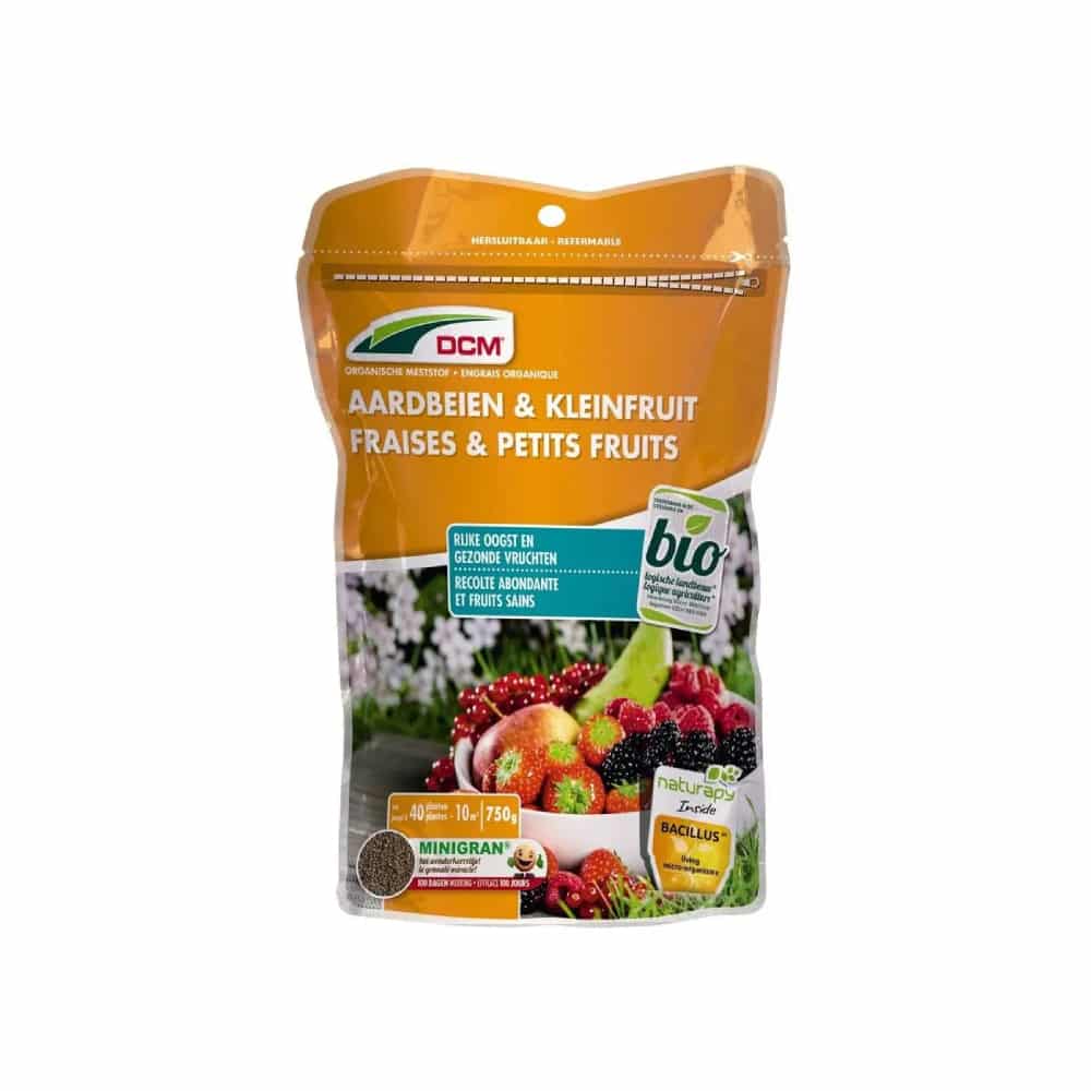 Aardbeien, frambozen, aalbessen en ander kleinfruit zijn delicaat en hebben een uitgebalanceerd dieet nodig voor stevige wortels en vruchten. DCM Meststof voor Aardbeien & Kleinfruit is juist rijk aan fosfor en kalium waardoor deze planten veel stevige en smakelijke vruchten bevatten. Deze voeding is 100% organisch en geeft de voedingselementen geleidelijk af gedurende 100 dagen, al naar gelang de wensen van de plant. Deze voeding is niet alleen geschikt voor kleinfruit zoals aardbeien, bessen en frambozen, maar ook voor fruitbomen. Appels, peren, abrikozen, pruimen etc.… verwen ze met DCM Meststof voor Aardbeien & Kleinfruit en zij verwennen jou met de smakelijkste vruchten! Lees hier meer. Plant u aardbeien en klein fruit in vivimus groenten zodat ze een nog betere start krijgen. Waarom Meststof Aardbeien & kleinfruit?