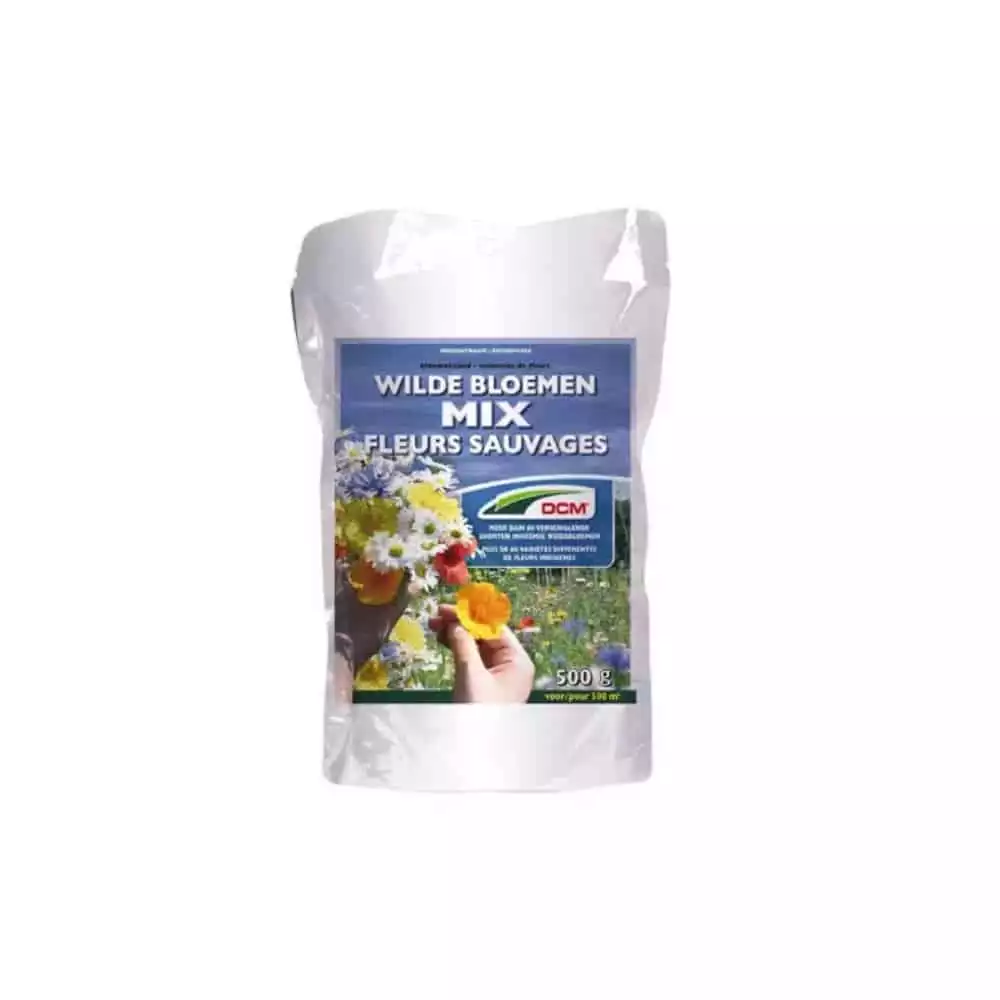 DCM Wilde Bloemenmix bevat zaden voor het creëren van een gevarieerde en kleurrijke bloemenweide. Het zadenmengsel bevat zowel eenjarige als meerjarige bloemenzaden, die zorgen voor een mooi kleurenpalet van wit, oranje, rood en zelfs paars. De bloemenmix kan gezaaid worden van maart tot mei en bloeit door tot in de herfst. Ook te gebruiken voor het zaaien van bermen of het doorzaaien van blijvende bloemenweiden.