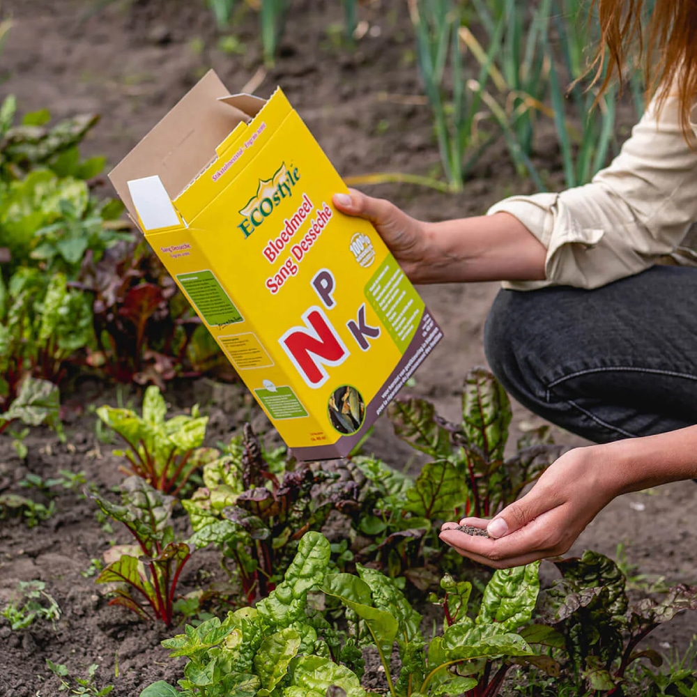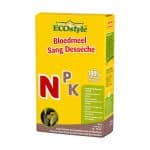 Bloedmeel is een natuurlijke stikstofmeststof, één van de drie meest essentiële voedingselementen voor planten, naast fosfaat (P) en kalium (K). Stikstof bevordert met name de groei van de groene delen van je plant. Geelverkleuring ontstaat namelijk door een tekort aan stikstof. Bloedmeel zorgt voor diepgroenere planten. Bovendien voorkomt bloedmeel de groei van klaver in je gazon.