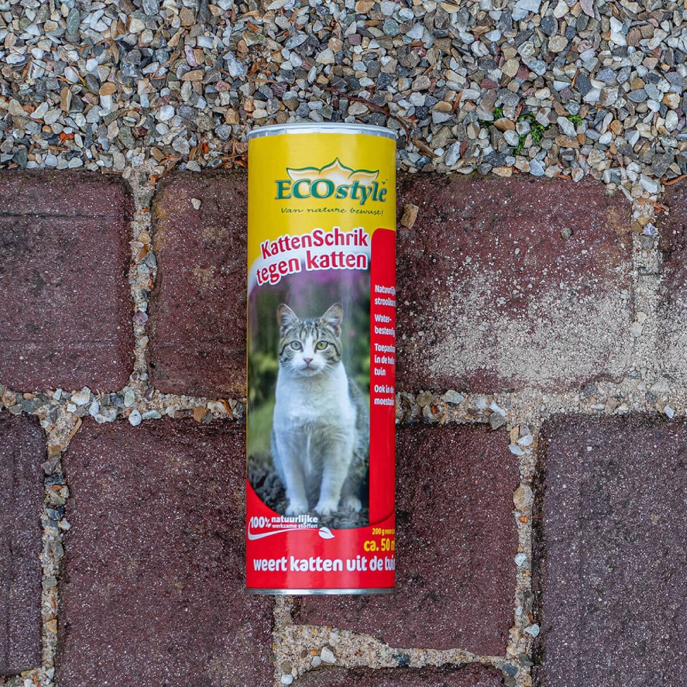 Weer katten uit uw tuin met KattenSchrik van ECOstyle. Dit 100% natuurlijke product verspreidt een geur waar katten een hekel aan hebben en ze dus de plek gaan vermijden en niet tot hun territorium gaan rekenen. Binnen twee weken bent u dan van uw kattenoverlast af. Het product is niet schadelijk voor mens, dier en milieu en is ook waterbestendig. Inhoud: 200gr en 400gr.