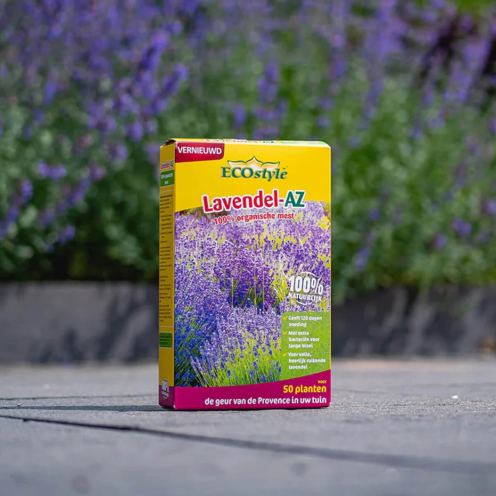 Organische lavendel mest Wil je rijkbloeiende, heerlijk ruikende lavendel, rozemarijn, salvia of andere geurende kruiden? Voor een optimale ontwikkeling van planten is een gezonde bodem met een rijk bodemleven van groot belang. Bemest daarom regelmatig met Lavendel-AZ. Zo wordt je plant minder vatbaar voor plagen en ziektes. De plant gaat extra groeien en bloeien en geeft een heerlijke geur af! Wat maakt Lavendel-AZ uniek? Lavendel-AZ is verrijkt met micro-organismen die zorgen voor een gezond bodemleven en sterk wortelstelsel. ECOstyle meststof bevat o.a. gepatenteerde schimmels: