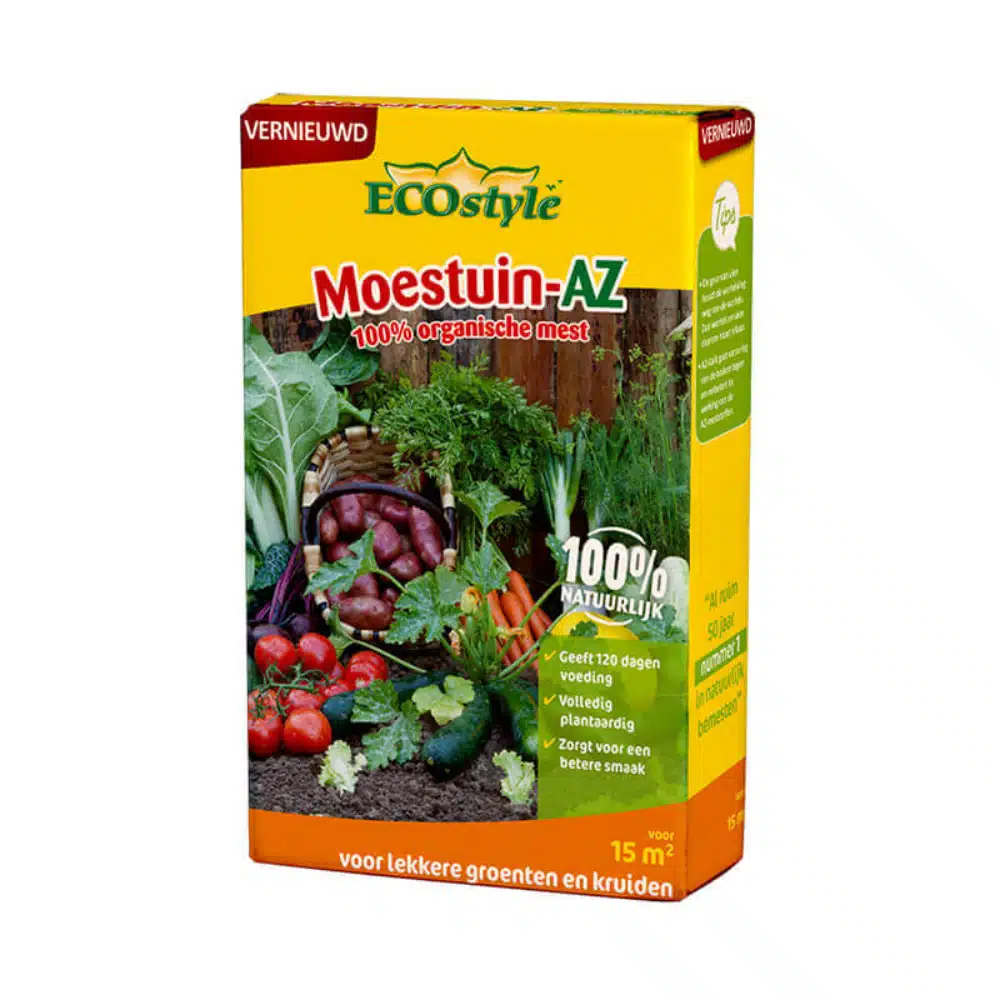Wil je lekkere groenten en kruiden oogsten uit eigen tuin? Voor een optimale ontwikkeling van gewassen is een gezonde bodem met een rijk bodemleven van groot belang. Bemest daarom regelmatig met Moestuin-AZ. Zo worden je gezaaide plantjes minder vatbaar voor plagen en ziektes. Ook zal de oogst groter en extra smaakvol zijn door de moestuin te bemesten. Wat maakt Moestuin-AZ uniek? Moestuin-AZ is verrijkt met micro-organismen die zorgen voor een gezond bodemleven en sterk wortelstelsel. ECOstyle meststof bevat o.a. gepatenteerde schimmels: