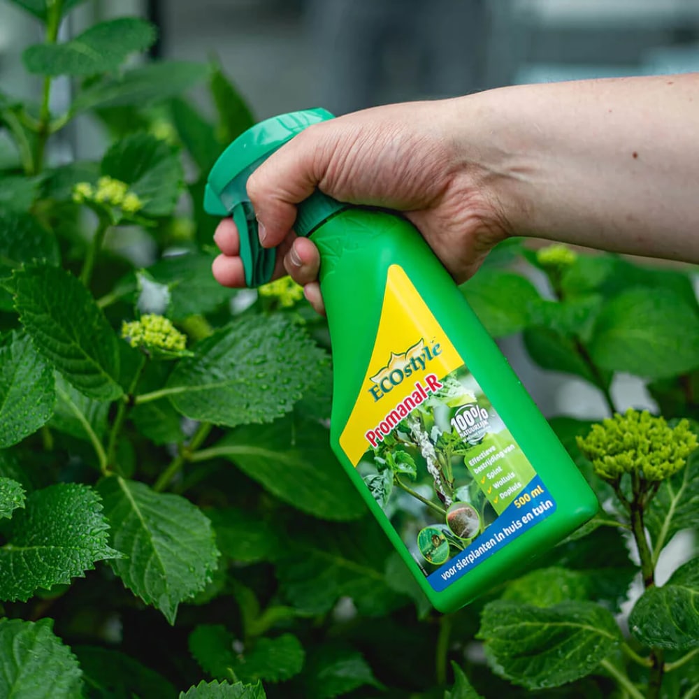 Elk insect heeft een functie. Beestjes zoals luizen of spint zijn weer een voedingsbron voor een volgend dier. Een paar beestjes op je planten is helemaal niet erg, je plant kan dit prima aan. Soms kan de balans in de tuin zoek raken waardoor de beestjes uitgroeien tot een plaag. Door je planten regelmatig te voorzien van organische meststoffen krijg je sterke een weerbare planten. Zo hebben plagen minder kans om toe te slaan. Heb je toch te maken met een plaag? Dan kun je hierna overgaan op het inzetten van natuurlijke vijanden zodat de natuur de plaag zelf oplost. Heb je na een aantal weken nog last van de plaag? Dan is Promanal-R een goede oplossing om de plaag onder controle te krijgen. Promanal-R inzetten Last van hardnekkige insecten zoals spint, wolluis, dopluis of schildluis? Ze nemen belangrijke voedingsstoffen uit jouw plant op, waardoor je planten vergelen of soms zelfs volledig uitvallen. Promanal-R is een snelle en effectieve oplossing tegen spint, dopluis, wolluis of schildluis. Het contactmiddel bestaat uit de werkzame stoffen pyrethrum, verkregen uit de bloemhoofdjes van chrysanten en koolzaadolie. Dit werkt op het zenuwstelsel van alle insecten. Gebruik Promanal-R ’s avonds, wanneer nuttige insecten zoals bijen naar hun nest zijn gekeerd. Zo doe je ze geen kwaad. Promanal-R is te gebruiken op je sierplanten binnen én buiten, kamerplanten en kuipplanten.
