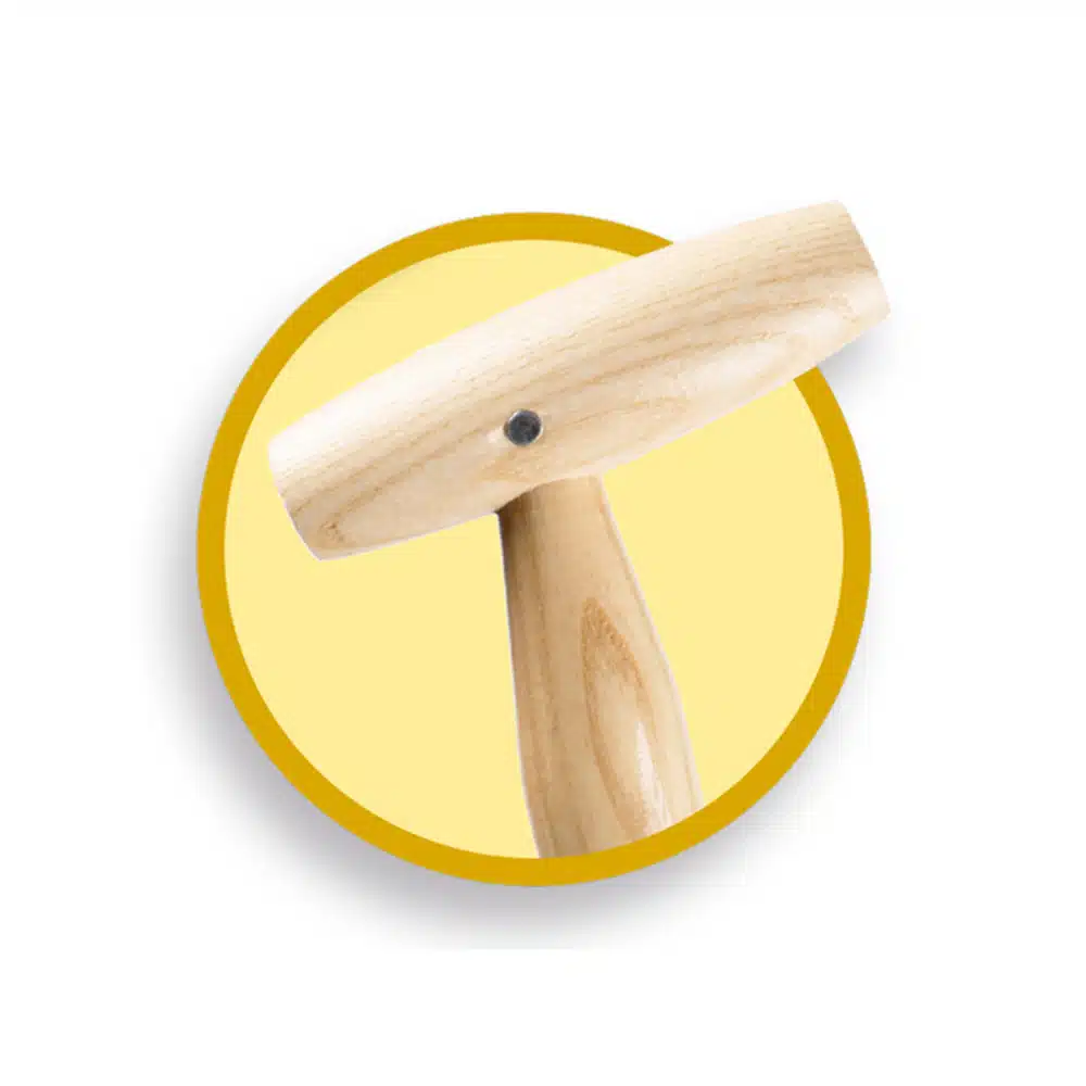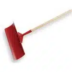 Gebogen metalen schuiver met essen steel en T-greep. Tevens geschikt voor wegschuiven van mest of slijk.
