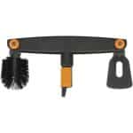 Deze combinatie van borstel en schraper vormt een complete aanvulling op de dakgootreiniging.