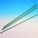 Stalen spanstaaf, groen geplastificeerd. Voor het van boven tot onder gelijkmatig spannen van gaas en vlechtwerk.