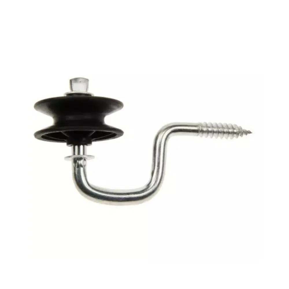 Zeer stevig uitgevoerde isolator met rol voor het geleiden van draad en koord door de hoeken. Deze rol-isolator is geschikt om allerlei soorten draad en koord de hoek door te geleiden, de steun is 7mm dik en voorzien van houtdraad.