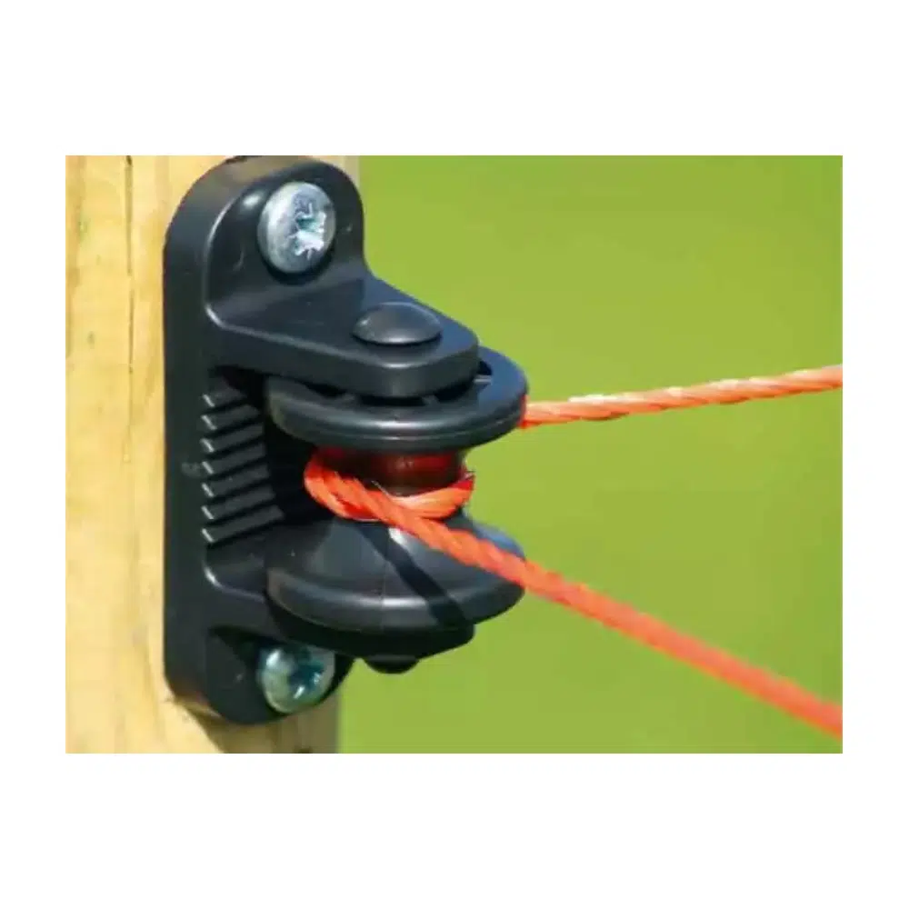 Te gebruiken als rol-hoekisolator in combinatie met de haspelhoekpaal of te bevestigen op een houten afrasteringpaal.