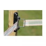 Deze lintisolator is geschikt om te plaatsen op begin-/eind punten of in de hoeken van een lintafrastering. Het lint kan opgespannen/vast kezet worden op de RVS / INOX beugels of met de lintgesp. Voor een correcte vaste doorverbinding van de schrikstroom kan men gebruik maken van de aansluiting onderaan de RVS/INOX bout, hier kan eenvoudig de hoogspannings-/aansluitkabel tussen geklemd worden. De juiste schroeven voor de montage van de isolatoren worden meegeleverd. Tevens is er een “ankerbeugel”beschikbaar verkrijgbaar voor het inhaken van een poortgreep of het koppelen van koord/draad. Hiermee kan de isolator ook als poortgreepanker gebruikt worden bij doorgangen in de afrastering.