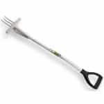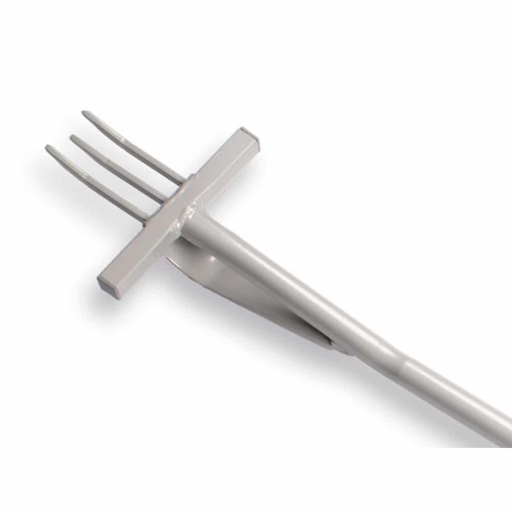 Jacobskruidvork of Ragfork ATLAS van staal met 3 tanden, brede opstap en kunststof D-greep, grijs gepoedercoat, totale lengte 102cm. Het ideale gereedschap voor het verwijderen van Jacobskruiskruid. Ook geschikt voor het uitsteken van andere wortelonkruiden zoals Paardenbloem, Zuring of Distels.