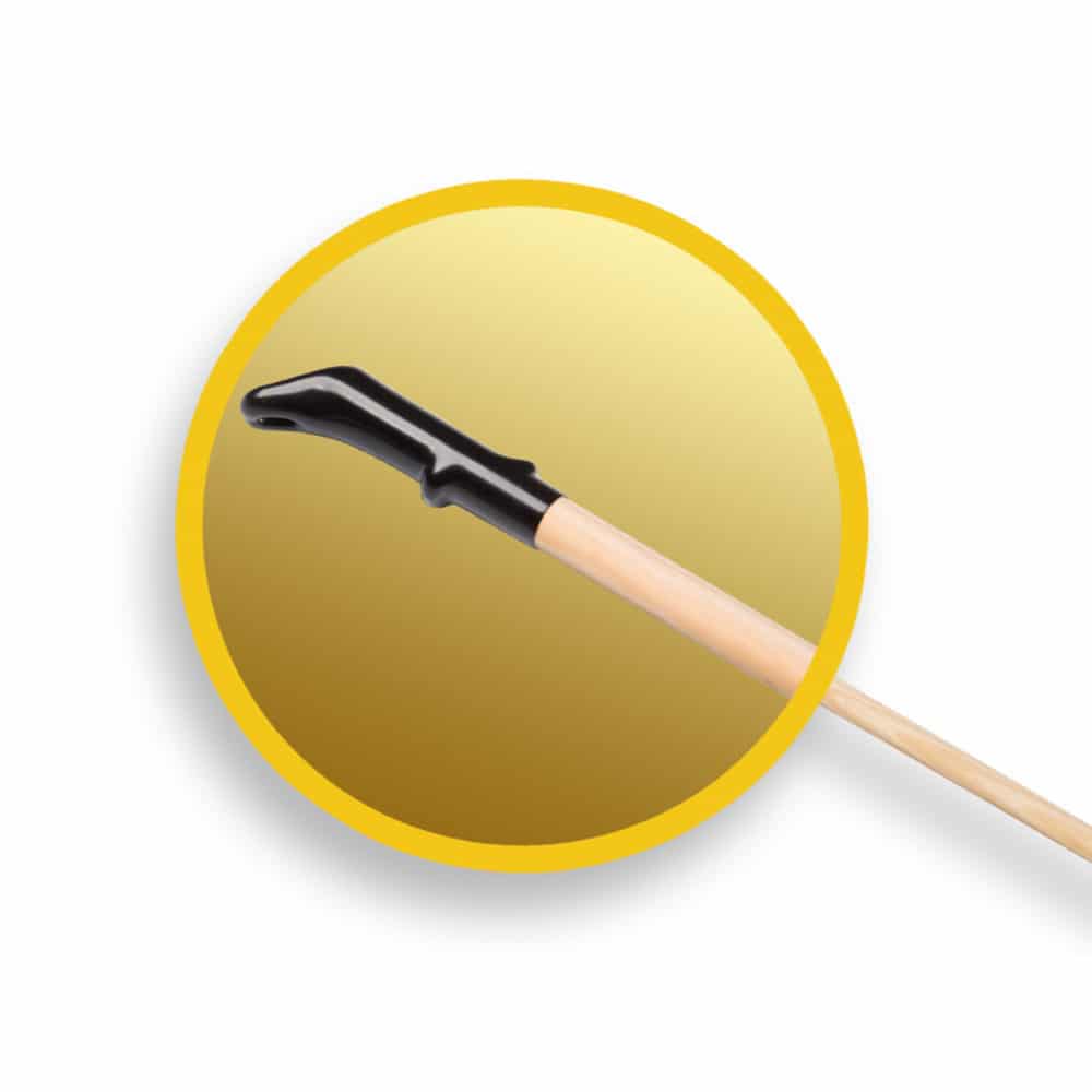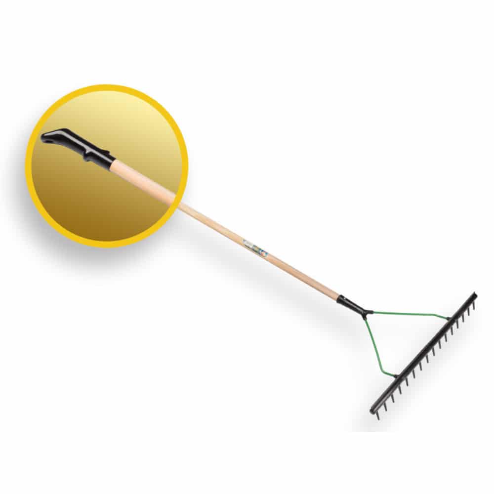 Deze hark is herkenbaar aan zijn zwarte kleur en heeft 16 kortere tanden (vergeleken met de bekende gele polyhark), waardoor deze hark minder zwaar door het zand harkt. het handvat voelt prettig aan en maakt het ophangen van de hark mogelijk.