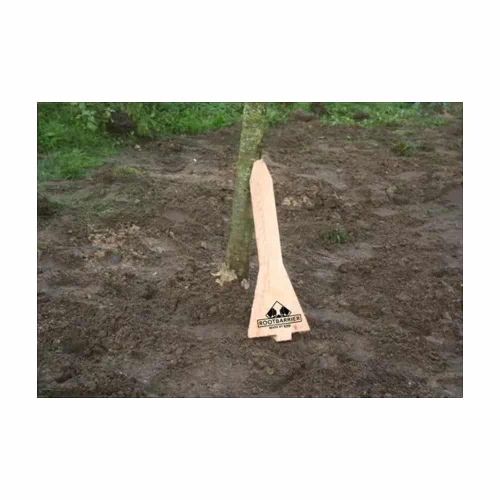 De Arbretio is ontwikkeld om ondergronds verankeren te vergemakkelijken. De naam is een samenvoeging van arbor (boom) en accretio (groeikracht). De Arbretio is een houten wig van Douglashout die vlak voor het aanplanten van de boom, horizontaal in de kluit wordt aangebracht. Dit kan met eenvoudig handgereedschap. Op de Arbretio is een uitgebreid onderzoekstraject uitgevoerd. Trekproeven in praktijkonderzoek lieten al zien dat het systeem in substraten, maar ook in normale bodemomstandigheden een heel goede verankering oplevert. Doordat de wiggen zich gedragen als wortels, is de rotatie van de kluit in het plantgat minimaal ten opzichte van andere methoden, wat de aanslag van de bomen en de stabiliteit aanmerkelijk bevordert. De Arbretio is 100% biologisch afbreekbaar en hoeft dus nooit te worden verwijderd. Na enkele jaren wanneer de boom zichzelf met eigen wortels voldoende heeft verankerd, zal het afbreekproces in gang worden gezet waarna in loop van tijd het product grotendeels door de grond opgenomen wordt. Eigenschappen • Snel en makkelijk aan te brengen, tijd- en kostenbesparend • Goede verankering in substraten en normale bodemomstandigheden • Stimuleert de beworteling waardoor de boom vlot zelf voldoende verankerd • Geen zichtbare verankering, kant en klaar eindbeeld • Geen boompalen nodig (zeer praktisch m.b.t. kabels en leidingen) • Geen stambeschadiging door boomband • 100% biologisch afbreekbaar • De Arbretio® hoeft niet verwijderd te worden