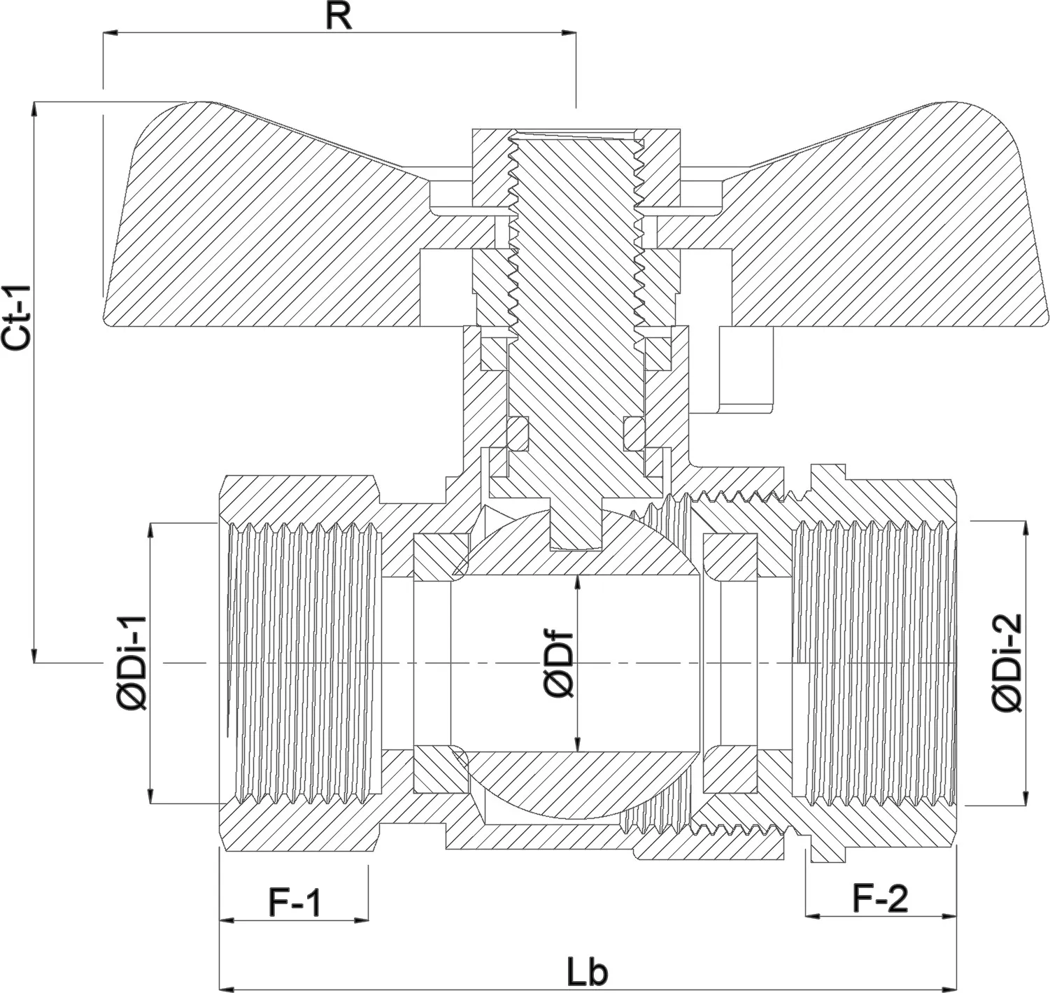 Kogelkraan met binnendraad en vlinderhendel