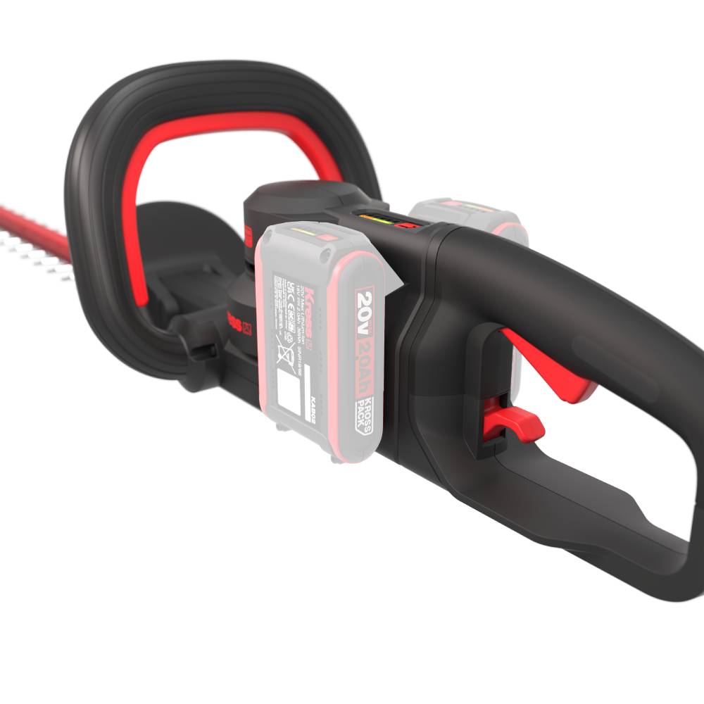 Zaagt soepel door dikke takken De krachtige borstelloze motor gaat door takken tot 2,5 cm dik met een indrukwekkende 3400 SPM, voor snel en moeiteloos snoeien voor een ongerepte heggenlijn.   Haarscherpe precisie, gezondere hagen Lasergestuurde messen met twee randen zorgen voor zuivere, consistente sneden bij elke beweging, waardoor de plant minder wordt belast en een gezondere, levendigere groei wordt bevorderd. Het resultaat? Een scherpe, verzorgde afwerking die lang meegaat.   Gebalanceerd voor comfort, gebouwd voor controle De trimmer is ontworpen voor werk boven het hoofd en blijft zelfs onder een hoge hoek stabiel staan, zodat u nauwkeurig en zonder vermoeidheid kunt zagen waar anderen tekortschieten.   Blijvende mesbescherming Een versterkte punt en duurzame beschermkap helpen schade door stoten te voorkomen, zodat de messen scherp blijven en je gereedschap seizoen na seizoen in topconditie blijft.   Moeiteloos trimmen vanuit elke hoek De 180° draaibare achterhandgreep past zich aan je grip aan voor maximaal comfort en precisie, waardoor je soepel, natuurlijk en zonder kracht kunt zagen.   Ingebouwde bescherming. Ingebouwde prestaties. Het Kress 40 V accusysteem zit boordevol functies: SmartLink-technologie voor een beter energiebeheer, Cell Guard voor schokbescherming en HeatShield om de cellen koel te houden voor een langere levensduur van de batterij.   Belangrijkste kenmerken