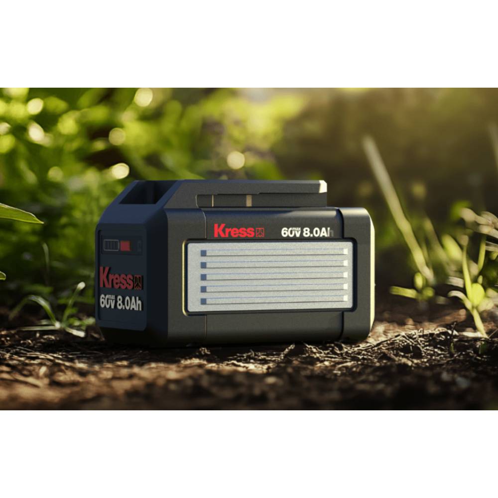 De Kress 60 V accu, ontworpen voor professionals, levert uitzonderlijke kracht en prestaties voor grote tuinen, beboste landschappen en kleine boerderijen. Hij is volledig compatibel met alle Kress 60 V gereedschappen, optimaliseert de energietoevoer met Smartlink, beschermt de cellen met Cell guard en blijft koel onder zware belasting met Heatshield. Dit zorgt voor continu hoog vermogen, snel opladen en een langere levensduur.