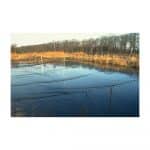 Professionele vijvernetten met grote ruitvormige mazen voor de overspanning van kweekvijvers tegen reigers, aalscholvers, ijsvogels en andere visetende vogels.