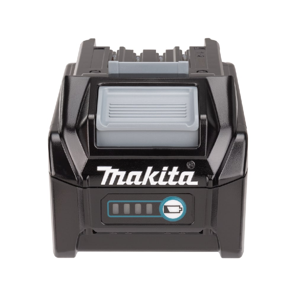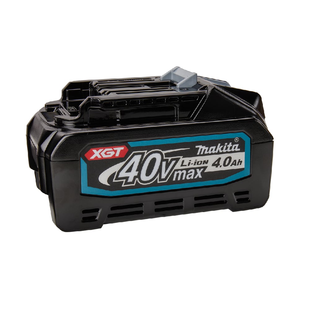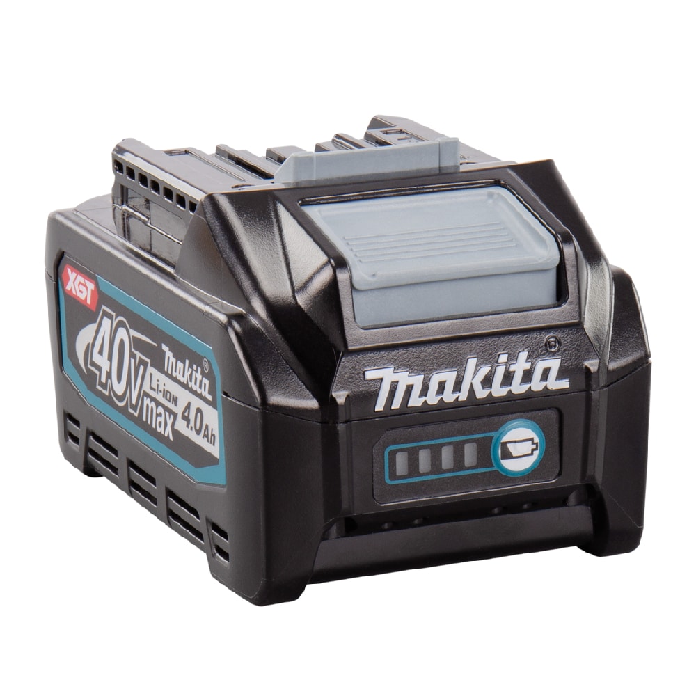 XGT 40 V Max Li-ion accu met een tankinhoud van 4,0 Ah. De accu is voorzien van een led indicator die de tankinhoud van de accu weergeeft. In combinatie met de DC40RA snellader of DC40RB duo snellader is de accu in slechts 45 minuten weer volledig geladen.