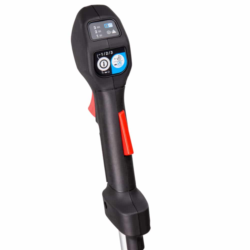 • Professionele accubosmaaier met een bijzonder krachtige bovenaan geplaatste 2×18 V motor met een vermogen van 1kW.