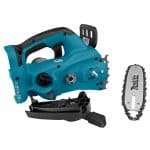 Productomschrijving Een 2×18 V Lithium-ion accu tophandle kettingzaag met een kettingsnelheid van 8,3 m/sec. De tophandle kettingzaag is ideaal voor snoei- en zaagwerk op locaties waar geen netstroom voorhanden is of waar een lagere geluidsproductie gewenst is. De zaag is daarom geschikt voor boomverzorgers en werkvoorzieningsschappen. De DUC252Z is voorzien van een automatische kettingsmering en elektrische motorrem. De ketting kan zonder gereedschap gespannen en vervangen worden. Gebruiksvoordelen