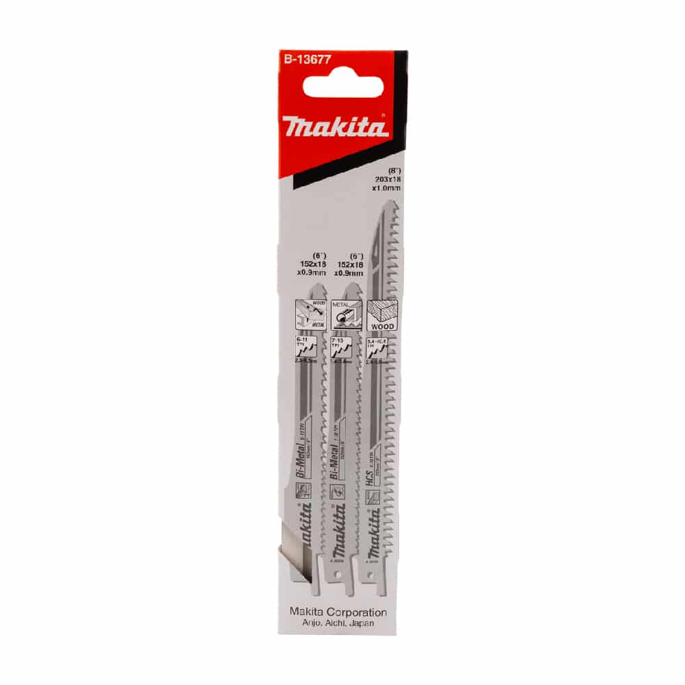 Productomschrijving Elke metaal- en houtbewerker heeft baat bij een uitgebreide set zaagbladen voor zwaar werk. Je rust je professionele reciproczaagmachine uit met deze Makita Reciprozaagbladenset 3-delig van uitstekende kwaliteit. De bladen zijn er in verschillende lengtes, zodat je in elke situatie over het juiste gereedschap beschikt. B-05038 voor het zagen van aluminium, non-ferro, ijzer, RVS en kunststoffen. B-05044 voor het zagen van diverse materialen zoals plaatstaal (5-8mm), aluminium, non-ferro metalen, hout, hout met spijkers en kunststoffen. B-05153 voor het zagen van hout, spaanplaat, MDF en kunststoffen.