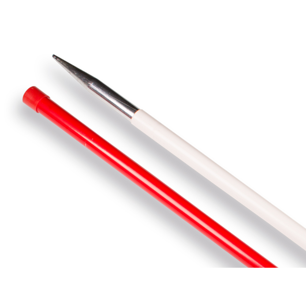 Jalonstok opgebouwd uit twee metalen delen, Ø 27mm. Voorzien van een stevige PVC ommanteling. Met ronde stalen punt. Totale lengte 216 cm. De deelbare jalonstok is gemakkelijk te vervoeren. Merk NESTLE, made in Germany.