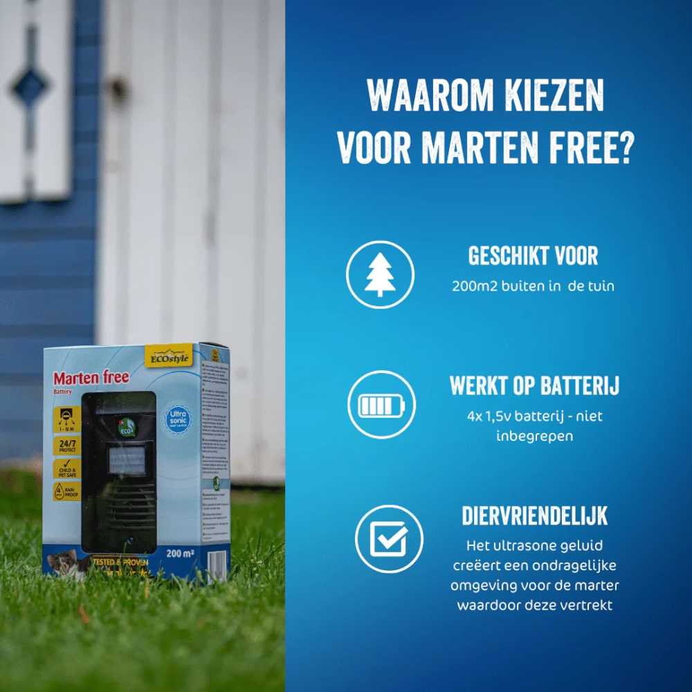 Marters diervriendelijk verjagen met ultrasoon geluid.