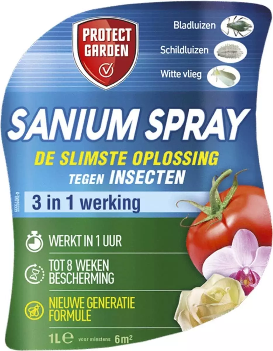 Dankzij de vernieuwde formule is Sanium de nieuwe norm voor insectmiddelen. De spray heeft een systemische werking, wat betekent dat het middel door de plant wordt opgenomen en via de sapstroom door de hele plant wordt verspreid. Hierdoor is dit product zeer effectief tegen bladluizen, schildluizen en witte vlieg. Het grote voordeel van deze spray is dat het niet schadelijk is voor nuttige insecten. Je kunt dit middel toepassen op sierplanten, fruit en groenten. De beste tijd om de spray toe te passen is tussen april en september.