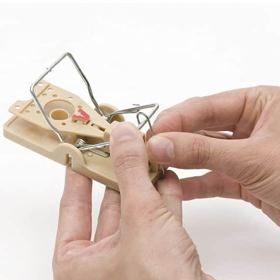 4. Ledig de val door de hendel langzaam op te tillen en gooi de rat in plastic verpakt weg. Reinig de val voordat u deze opnieuw gebruikt.