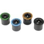Rain Bird Sproeikop, type U-serie wordt gebruikt met de 1800 en UNI-spray-serie pop-up in gevallen waarin sproeiers met verschillende bogen en sproeidiameters in dezelfde zone dienen te worden gebruikt en het belangrijk is om een gelijkmatige afgifte te hebben, onafhankelijk van de gebruikte nozzle. De U-serie is ideaal voor plaatsen waar de gebieden dicht bij de sproeier niet voldoende water krijgen en met de dubbele nozzles in de U-serie is de waterverdeling beter. De bovenkant is gekleurd voor gemakkelijke straal- en boogidentificatie: U-8 (groen met 10°-traject), U-10 (blauw met 12°-traject), U-12 (bruin met 23°-traject) en U-15 (zwart met 23°-traject). Productblad