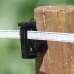 Contrast blauw 20mm lint dat dieren extra goed kunnen zien. Geschikt voor lange afrasteringen (<2000mtr). Wit 20mm lint, met een groene en rode rand, geschikt voor korte tot middel lange afrasteringen.