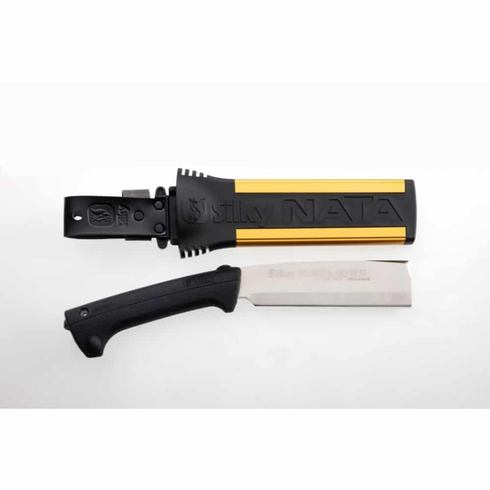 Hout kappen gaat vaak sneller dan het hout zagen of knippen. De Nata is een mix van snoeimes en snoeibijl en gesmeed uit SKS-51staal, gemaakt voor het kappen van kleinere takken of lootwerk en voor het schillen of ontschorsen van bomen. Daarvoor is het einde van de bovenkant van het mes speciaal geslepen zodat men de schors eenvoudig kan pellen. De Genki handgreep smoort vrijwel alle trillingen, die door de slagkracht veroorzaakt worden en deze worden dan ook nauwelijks naar de hand en onderarm doorgegeven, wat een hoog werkcomfort geeft. De Nata is verkrijgbaar in vier lengten: 150mm, 180mm, 210mm of 240mm en één- of tweezijdig geslepen (single of double edge). Eénzijdig geslepen geeft een ‘carve” effect tijdens het kappen, goed toepasbaar bij het ontschorsen, tweezijdig geslepen geeft een splijteffect, goed toepasbaar bij het snoeien. Het zaagblad moet schoon gehouden worden, anders gaat de zaagwerking verloren. Hars lost op in olijfolie en dit is dan ook een effectieve, milieuvriendelijke manier om het blad te reinigen.