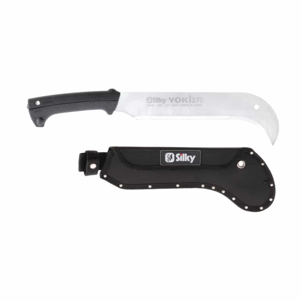 De Yoki machete heeft een ergonomisch antislip handgreep uit volrubber die ervoor zorgt dat u minder arbeidsintensief werkt en een hoger rendement behaalt. Het blad van de Yoki (27 cm) is gemaakt uit één geheel en kan gemakkelijk vervangen worden zonder los te schroeven. Dit blad is tegelijkertijd licht en zeer sterk vanwege het gebruik van speciaal gelegeerd staal. De krachtige Yoki is geschikt voor de zwaarste klussen zoals het hakken van klimplanten en het vrijmaken van struiken. De machete wordt geleverd met een speciale beschermhoes die kan worden bevestigd aan uw riem, het gat in het blad dient voor ophanging aan een haak.