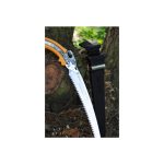 Het zaagblad moet schoon gehouden worden, anders gaat de zaagwerking verloren. Hars lost op in olijfolie en dit is dan ook een effectieve, milieuvriendelijke manier om het blad te reinigen. Agressievere middelen kunnen het rubber van de handgreep aantasten. Wanneer je de zaag niet gebruikt, maak deze dan goed droog. Bewaar de zaag in de holster op een droge plaats.
