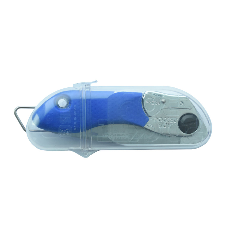 De Pocketboy is verkrijgbaar in twee lengten: 130 en 170 mm en 4 vertandingen. De grove vertanding (rood: 8 tanden per 30 mm) is geschikt voor algemene snoeiwerkzaamheden in vers hout. De medium vertanding (zwart: 10 tanden per 30 mm) is ideaal voor het zagen in meer drogere en hardere maar verse houtsoorten. De fijne vertanding (blauw: 20 tanden per 30 mm) is geschikt voor het zagen van hard en droog hout, zoals bamboe en kan goed gebruikt worden bij hobby en klussen. De extra fijne vertanding (paars: 26 tanden per 30 mm) is bedoeld voor de fijne houtsnijderij, zoals de meubelmaker die bedrijft. De bladen zijn onderling uitwisselbaar binnen dezelfde bladlengte. Het geavanceerde ontwerp van de Mirai-Me vertanding, de tanden zijn in de bladdikte ingeslepen, er is geen tandzetting, zorgt ervoor dat je moeiteloos door het hout zaagt met een zeer gladde afwerking van de zaagwond tot gevolg. Het hardchromen blad is roestwerend, gaat harsvorming tegen en heeft een zeer slijtvast oppervlak. Het blad is gemaakt uit een speciale staallegering en de combinatie met inductief geharde tanden zorgt er voor dat de zaag zeer lang scherp blijft. Het uit rubber gegoten handvat ligt comfortabel in de hand en reduceert trillingen sterk. De bladen zijn onderling uitwisselbaar. Je kunt de schroef eenvoudig losdraaien zonder gebruik van gereedschap. Zo heb je één zaag voor verschillende doeleinden. De Pocketboy wordt standaard geleverd in een transparante hardcase met riemhouder. zaagblad moet schoon gehouden worden, anders gaat de zaagwerking verloren. Hars lost op in olijfolie en dit is dan ook een effectieve, milieuvriendelijke manier om het blad te reinigen. Agressievere middelen kunnen het rubber van de handgreep aantasten. Wanneer je de zaag niet gebruikt, maak deze dan goed droog. Bewaar de zaag op een droge plaats, bij voorkeur in de hardcase of een daarvoor bestemde hoes.