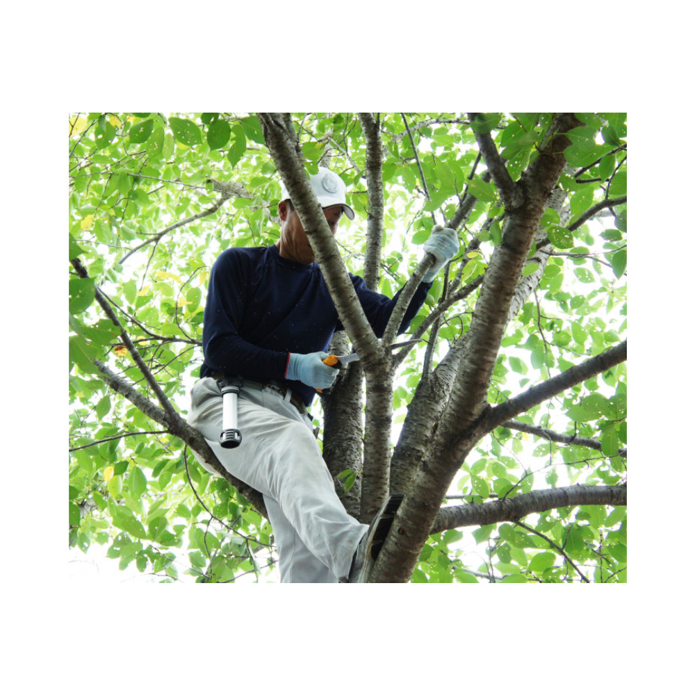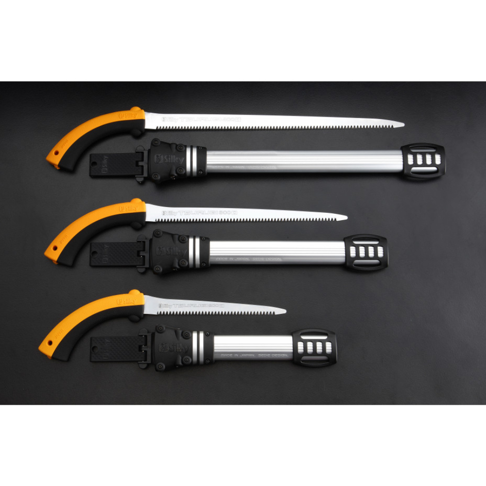 Silky is er in geslaagd om een unieke trekzaag te ontwikkelen met een lage rug waarmee je zeer precies kunt snoeien, zonder in te leveren op zaagkracht. Dit ingenieuze ontwerp maakt de Tsurugi een perfect uitgebalanceerde zaag. Met de Tsurugi ben je in staat om met chirurgische precisie in de meeste dicht begroeide ruimtes te werken, zonder omringende takken te beschadigen. Deze zaag is ook ideaal voor het verwijderen van probleemtakken zoals plakoksels of kruisende takken. Het sterke zaagblad heeft een hoge stijfheid en een rij vlijmscherpe, agressieve tanden die een gladde zaagwond achterlaten. De comfortabele Genki revolvergreep heeft geen bouten of schroeven, maar bestaat slechts uit twee rubberen delen die het staal perfect en veilig omsluiten. Handig, er komt dus geen enkel gereedschap aan te pas! De aluminium holster is zo ontworpen dat de zaag er in geen mogelijkheid uit valt, maar wel met één hand is los te trekken. De holster is licht van gewicht en zowel voor rechts- als linkshandigen te monteren. Maak je Tsurugi compleet met de beschikbare leg straps zodat je de zaag altijd binnen handbereik hebt. Wist je dat de Tsurugi is vernoemd naar een tweesnijdend Japans zwaard dat werd gebruikt in de oudheid? Een bewijs van zijn grote prestatie! Alle zagen uit de Tsurugi serie zijn voorzien van een lichtgewicht, aluminium holster (voor zowel rechts- als linkshandigen) met afneembare riemhouder. De holster heeft 4 rolletjes die voorkomen dat de scherpe tanden de hoes beschadigen. De onderkant is voorzien van een grote opening die vocht en zaagsel afvoert. Het zaagblad moet schoon gehouden worden, anders gaat de zaagwerking verloren. Hars lost op in olijfolie en dit is dan ook een effectieve, milieuvriendelijke manier om het blad te reinigen. Agressievere middelen kunnen het rubber van de handgreep aantasten. Wanneer je de zaag niet gebruikt, maak deze dan goed droog. Bewaar de zaag in de holster op een droge plaats.
